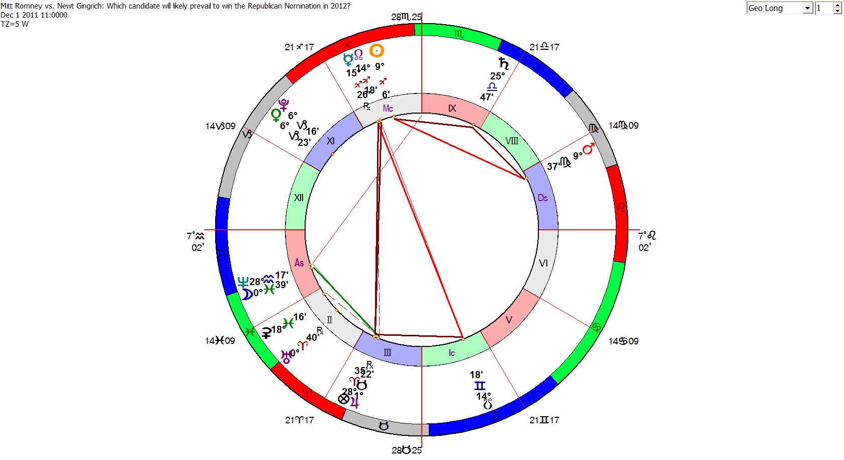 Horary Question: Mitt Romney vs. Newt Gingrich: Which candidate will likely prevail to win the Republican Nomination in 2012?