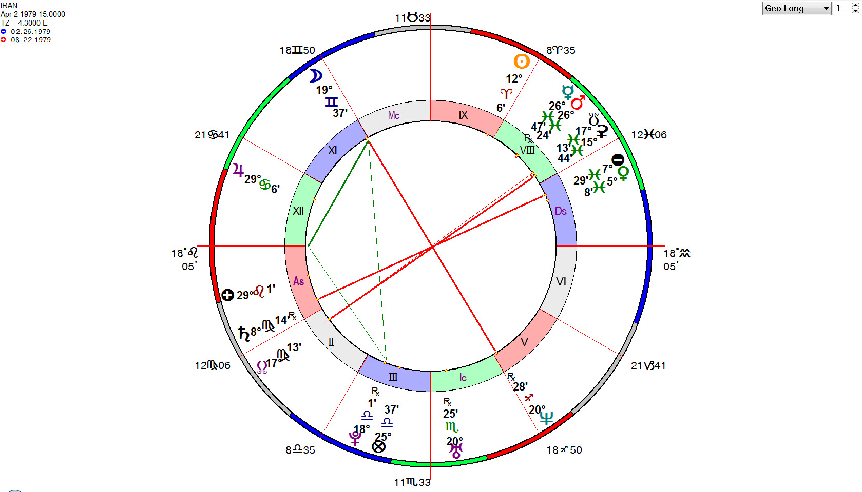 The Uranus-Pluto square alignment in mid-May of 2013 begins to activates Iran’s Sun – Pluto configuration. Therefore we can expect Iran’s nuclear ambition to remain intense throughout 2012 into 2013. Therefore the prospects of confrontation with Israel and the United States which seek to rein in Iran’s nuclear capacity is one that may spin out of control, if it is not quickly contained. In every confrontation, there is a point of no return, when another provocation, action or inflammatory comment proves in retrospect to have been the trigger that started a war. The Iranian leadership seems split between a radical, theocratic, ideological faction, led by the Ayatollah Khamenei, and a somewhat more moderate faction of secular government, led by the unpredictable President Ahmadinejad. Both factions want a nuclear bomb (Sun – Pluto) to prove that Iran is a great power, supreme in its region of the world, like the Persian Empire of old.