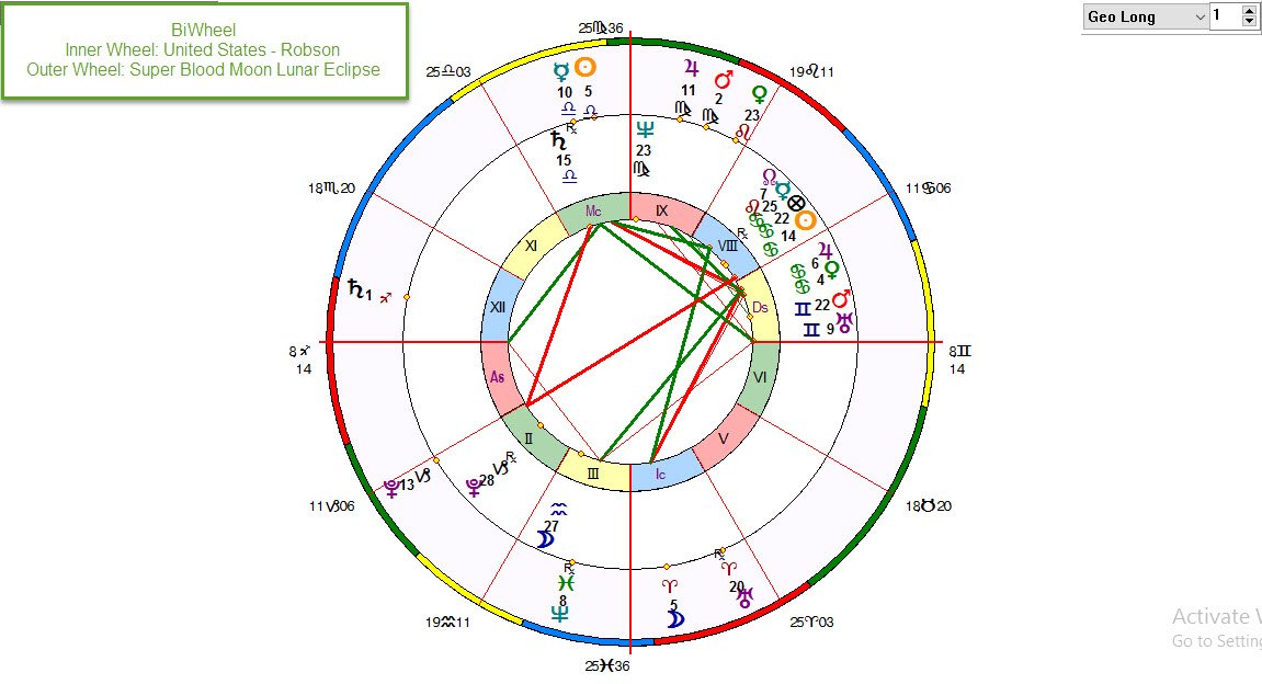 The Super Blood Moon – Lunar Eclipse event horoscope makes a direct hit on the U.S. Venus-Jupiter conjunction in its national horoscope, as transiting Pluto is within 20′ of orb to the U.S. Sun. Therefore, we can expect America’s period of grace is coming to an end and a time of judgement is beginning.