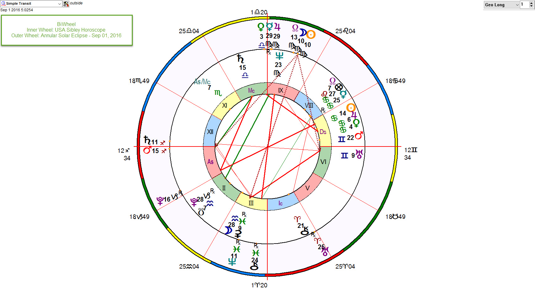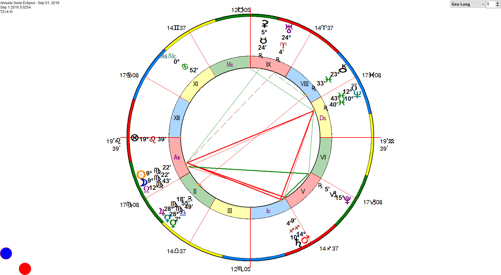 The Annular Solar Eclipse on September 1st, 2016 at 9° 21′ Virgo will likely be a major watershed event for those nations and world leaders that get energized by it. For this eclipse will be making a number of challenging aspects, making it very strong and compelling in its impact on the world stage. The Eclipse makes an opposition to Neptune, square to both Mars and Saturn, and a sesquiquadrate to Uranus.