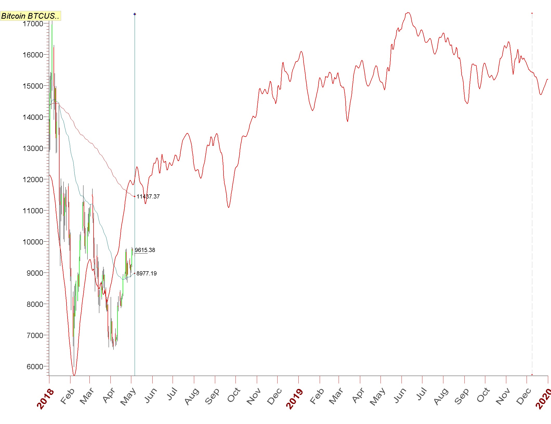 Bitcoin BTC-USD based on a modified Bradley forecast method that measures both the Geocentric and Heliocentric potency of major planetary aspects.