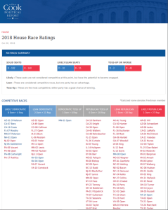 That’s pretty much what I’m seeing. Tomorrow I’d like to talk about the Senate and talk about the particulars of that race, especially with what’s going on in Florida and Indiana. I may also consider looking at some of the governor races if I have time on Monday to see which races are likely to either shift the governorship into the Republican or Democratic majority.