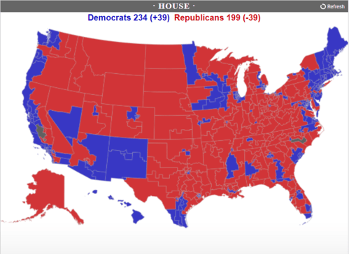 At 9:33 PM EST, nearly 3 hours before the polls would close on the West Coast, Fox News Decision Desk projected the Democrats will take control of the House of Representatives for the first time in eight years.