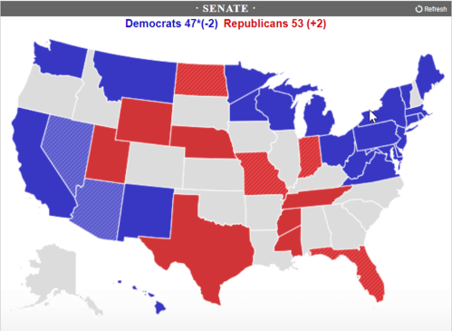 This is important to keep in mind because at the same time that the Democrats gained in the House, they lost in the Senate races. Democrats lost two seats and the Republicans gained two seats with the Republicans now dominating the Senate 53-47.
