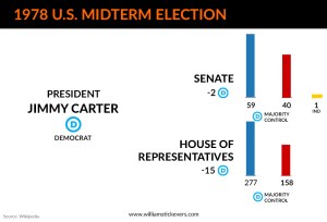 President Trump’s approval ratings in the exit polls are also something to bear in mind which were averaging between 45 to 46 percent. This is better than Reagan’s presidential approval rating in 1982 which was only 42 percent, and about the same as Clinton in 1994 at 46 percent. In 2010 Obama’s approval rating was the same as Trump – 45 percent. Trump’s approval is less than that recorded for Jimmy Carter in 1978 at 49 percent, and for George H.W. Bush in 1990 with 58 percent. Both Carter and Bush lost seats in Congress as well as losing in the next Presidential election. They did not get reelected but had higher poll ratings than Trump and Obama, Reagan, and Clinton, presidents who got reelected.