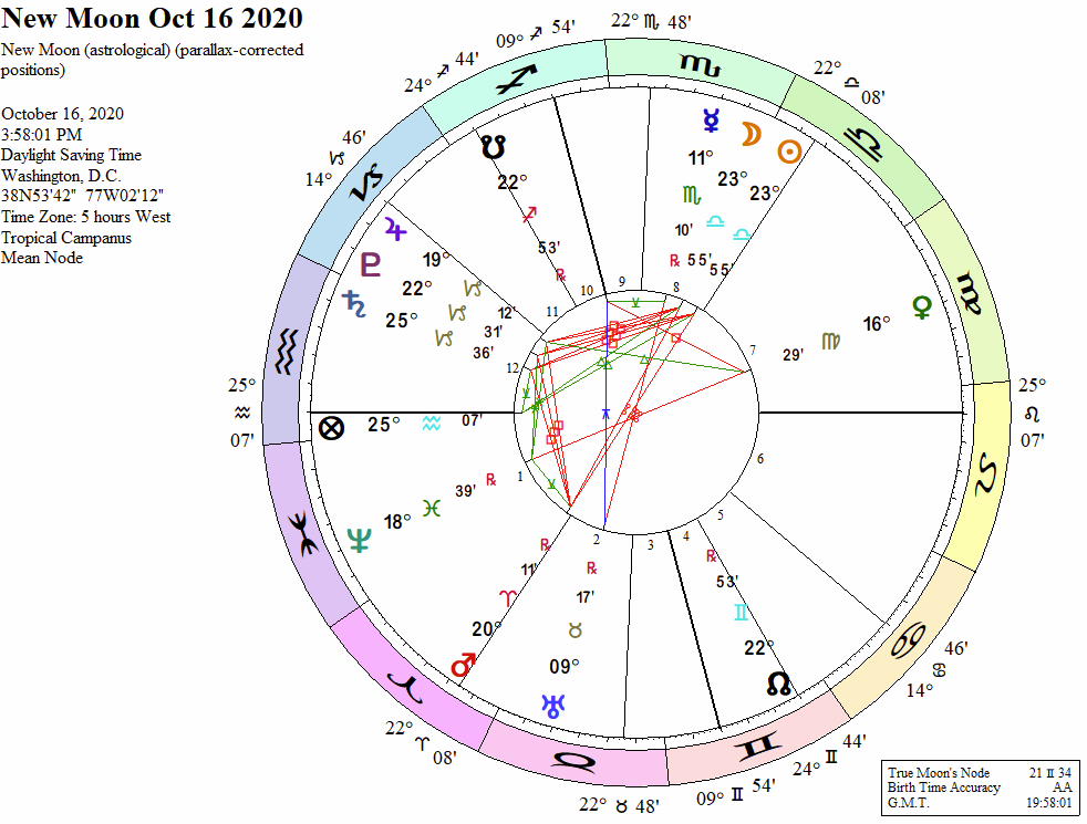 The October 16th New Moon at 23°55′ Libra forms a challenging T-square alignment with the planets Mars, Jupiter, Saturn, and Pluto. The October New Moon also aligns with the benefic fixed star Spica, testimonies that augur a period of intense experiences and the confrontation with challenging and provocative aspects of life that are strange, profound, weird, mysterious, or taboo.