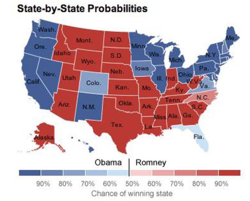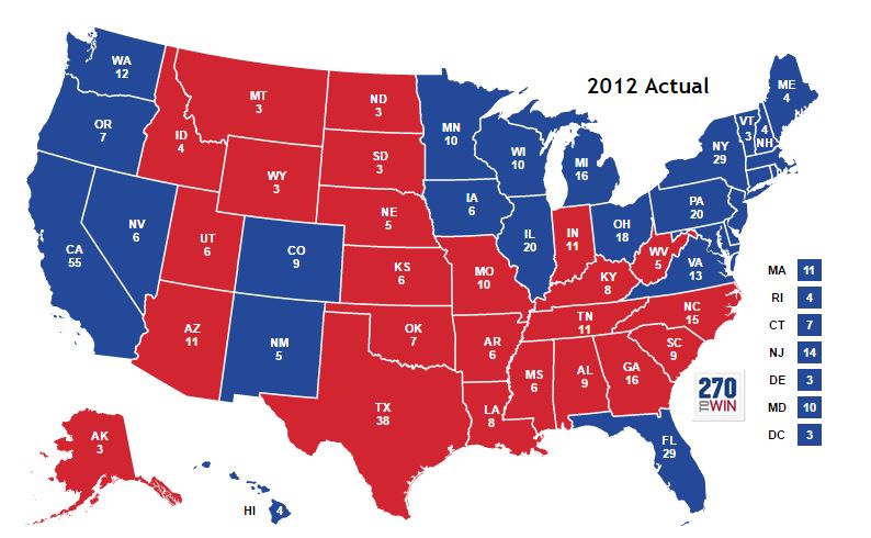 Below are projections for the 2012 U.S. Presidential Election as of November 6, 2012.