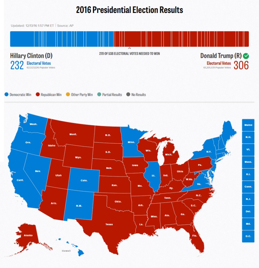 Below are projections for the 2016 U.S. Presidential Election as of November 7, 2016.